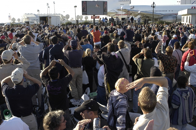 Толпа наблюдает рекордный полёт SpaceShipOne 4 октября 2004 года