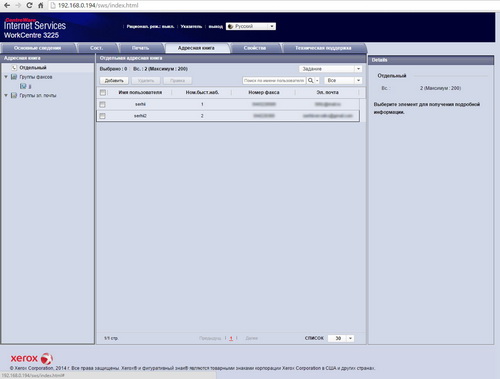 Дабы не перечислять все, приведём лишь основные – сетевые настройки, настройка по умолчанию сканирования, копирования, факса и печати, создание адресной книги, настройки безопасности, в том числе внешних серверов авторизации (Kerberos, LDAP, SMB), настройки серверов исходящей почты и почтовых уведомлений администратору (сообщение о состоянии расходных материалов, замятой бумаге и прочих системных ошибках). В общем, всё почти как у старших моделей. Ниже для ознакомления приведено несколько снимков экрана веб-панели управления.