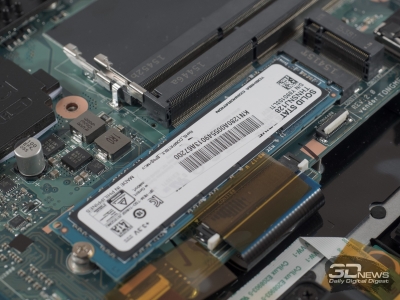 Отдельно отметим, что существуют более доступные модификации новинки, без SDD-накопителя. Возможно ли самостоятельно установить в них SSD формата M.2 — мы не знаем. Зато знаем точно, что в полученную нами модификацию возможна установка второго твердотельного накопителя, правда, несколько увеличенной длины либо через специальный крепёж.