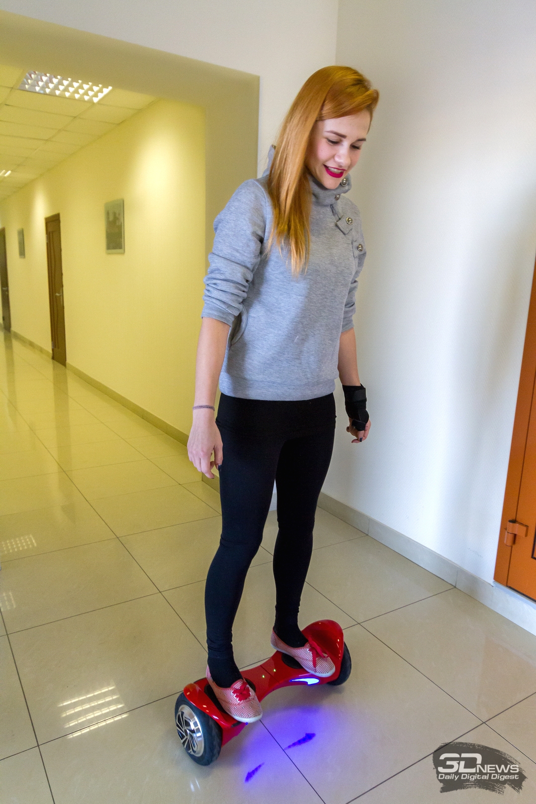 В варианте с Kseto Mini, мчащимся на максимальных 12 км/ч, сценарий, конечно, иной: в данном случае с гироскутером играет злую шутку его способность мгновенно менять направление движения – стоит лишь немного скорректировать наклон одной из платформ. И если на невысокой скорости маневренность девайса позволяет выписывать сложные фигуры даже в тесном офисе или квартире, то в режиме «форсаж» справиться с юрким гироскутером непросто. Поэтому, несмотря на искусственно лимитированную производителем максимальную скорость, за все время теста я так ни разу не довел до срабатывания ограничителя. Впрочем, не стоит считать тихоходность Kseto Mini недостатком. Хотя бы потому, что, во-первых, даже 10 км/ч на таком гироскутере ощущаются как все 30 км/ч на велосипеде, а, во-вторых, предназначение этого девайса явно не в преодолении больших расстояний на высокой скорости.
