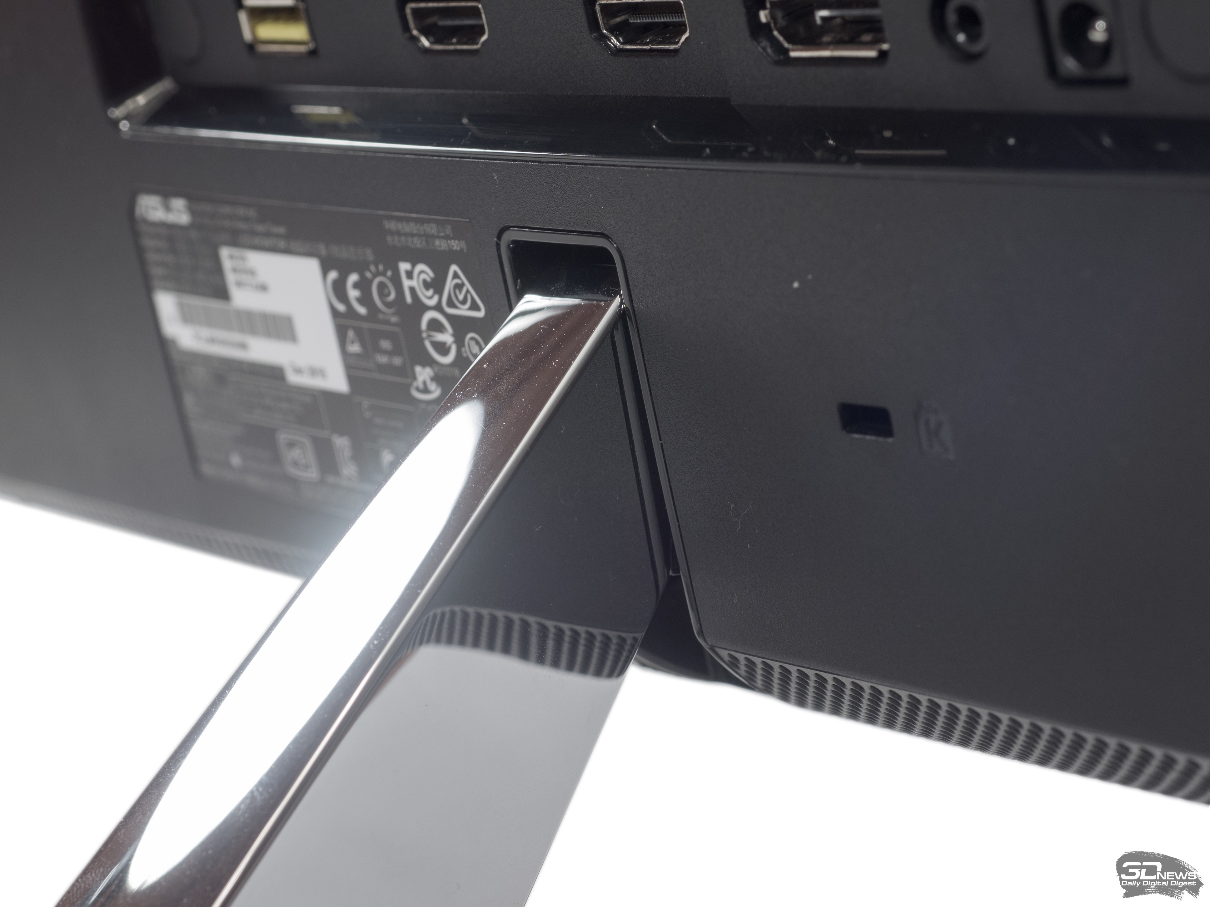 Центральная колонна жёстко прикреплена к корпусу. VESA-крепление отсутствует – это грустно. Думаем, что многие пользователи не отказались бы от возможности повесить такой монитор на кронштейн.