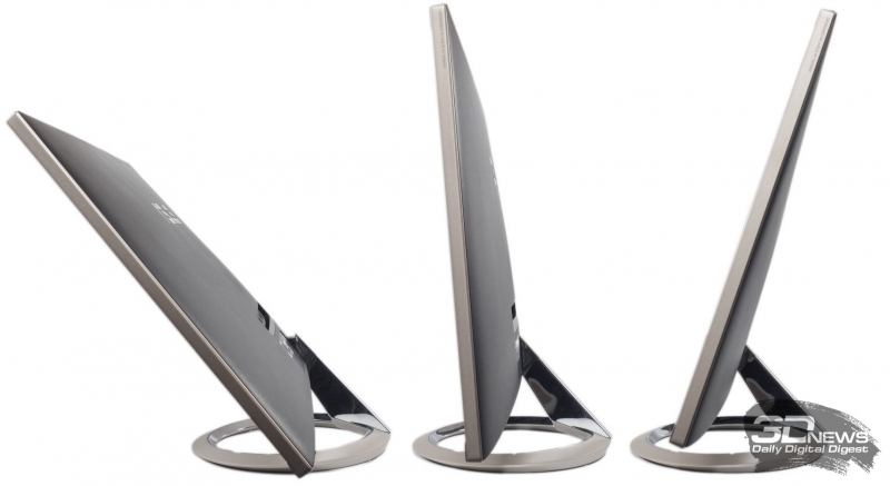 Эргономические возможности монитора сильно ограничены. Доступен наклон устройства в пределах от -5 до +20 градусов, также можно наклонить экран на 45 градусов вперёд для удобства подключения кабелей.