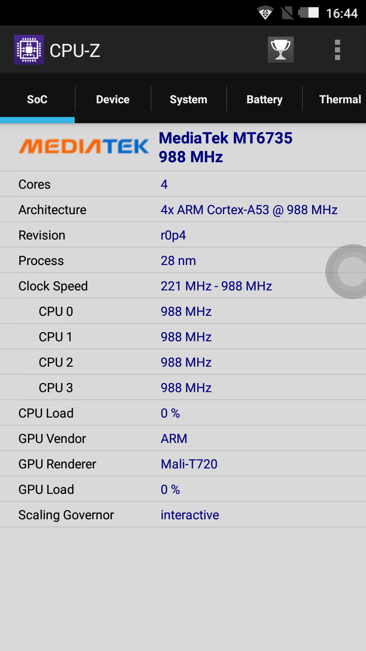 Oukitel K10000 – информация о системе и «железе» по данным приложения CPU-Z