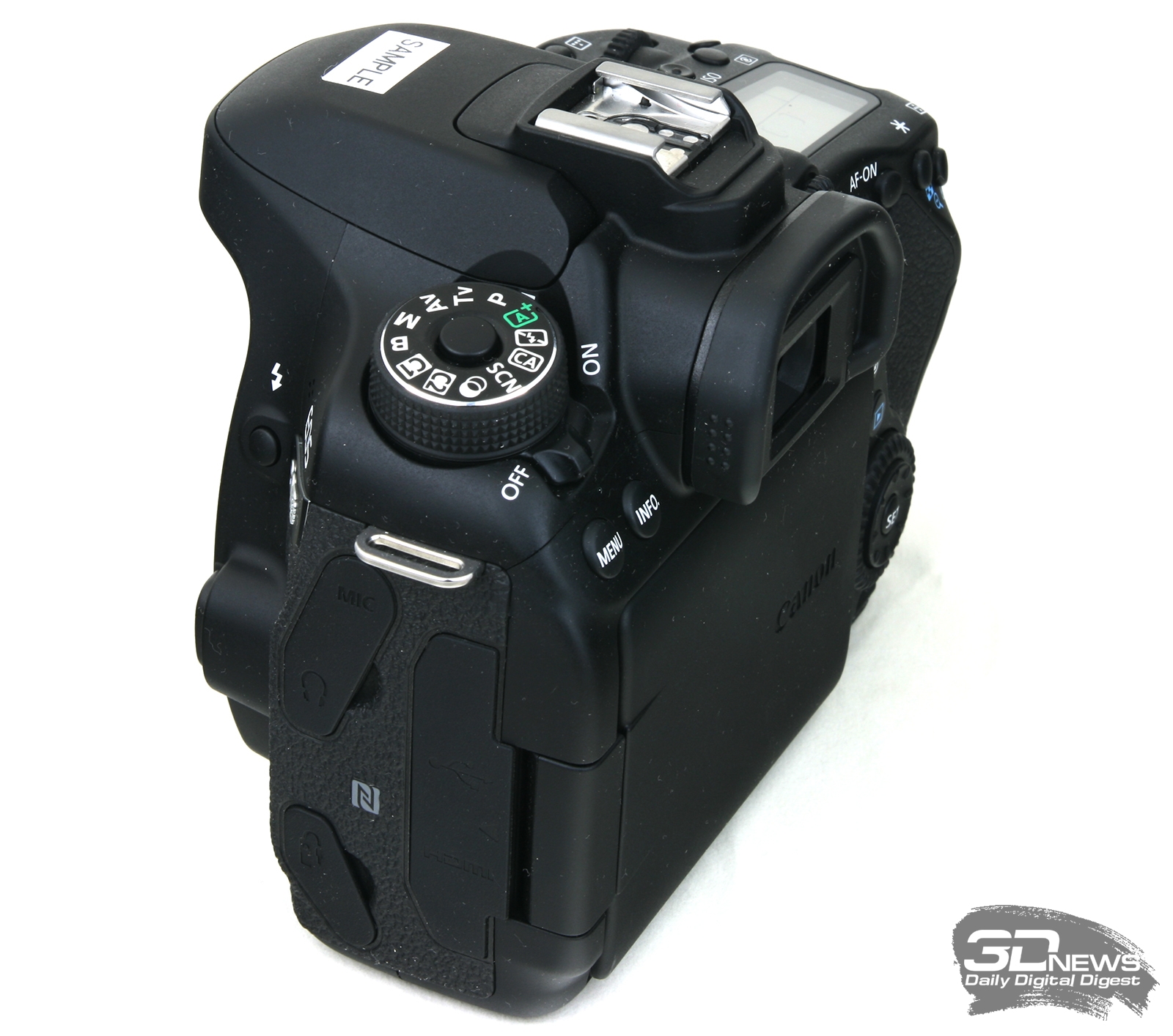 Внешне 80D не сильно, но отличается от предшественницы. В первую очередь отмечаем, что клавиши с тыльной стороны теперь не многоугольные, а просто круглые, игры с формой кнопок производитель оставил только для базовых камер. Тем самым Canon разводит D80 и D1300/D750/D760 по разным сегментам. Кроме того, несколько отличаются резиновые заглушки на левой грани корпуса: теперь их три, а не две – «виной» тому добавленный порт подключения наушников. Масса камеры относительно предшественника уменьшилась с 755 до 730 грамм, однако Nikon D7200 всё равно легче на 55 грамм.