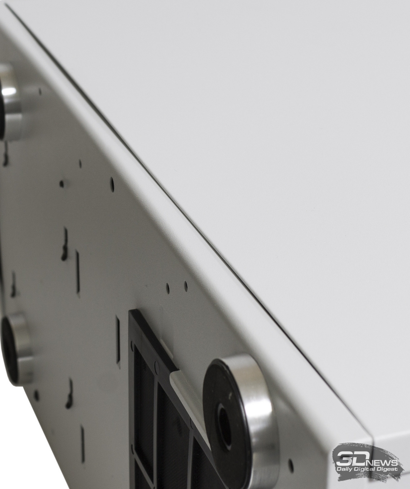 Средняя часть посадочного места под боковую стенку в данном экземпляре корпуса сужается снизу, вследствие чего боковина выпирает наружу — и этот дефект изначально присутствовал на свежеизвлеченном из коробки корпусе.