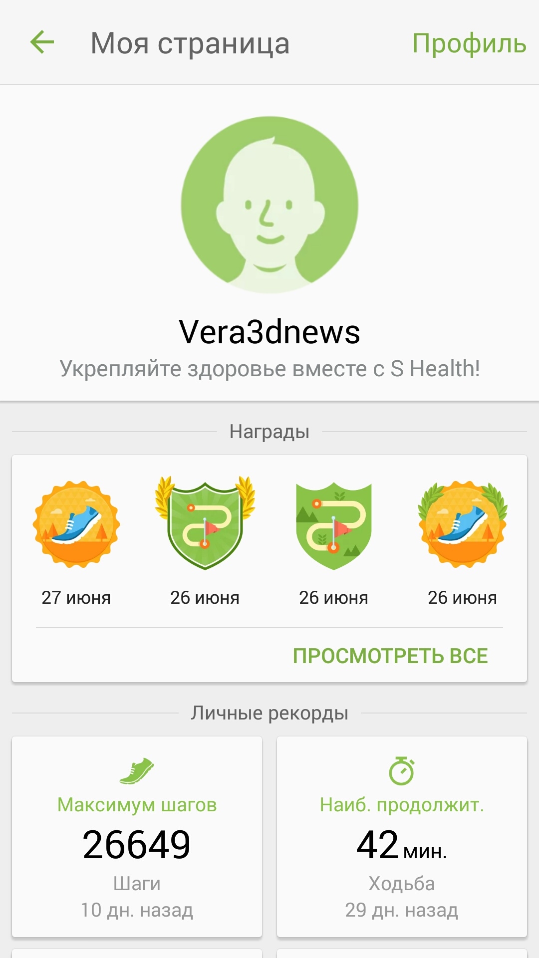 Приложение S Health уже чуть более функционально – сюда трекер пересылает данные о пройденных шагах. Приложение очень приятное и грамотное – но работает только с браслетами/часами Samsung, пусть и не только Charm. Можно, конечно, пользоваться S Health и без носимого гаджета вовсе – оно будет работать с шагомером телефона как с источником данных.