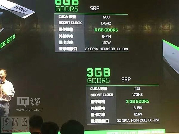 p>Видеокарты NVIDIA Pascal в целом оправдали ожидания геймеров и энтузиастов по части производительности, и после GeForce GTX 1080, GTX 1070 и GTX 1060 6GB «зелёные» намерены выпустить модель GeForce GTX 1060 3GB. Ранее ходили слухи о том, что трёхгигабайтная версия GP106 ограничится 1152 потоковыми процессорами вместо 1280, и данная информация подтвердилась: в ходе презентации младшей карты в Китае на слайде фигурировало именно число 1152 напротив параметра «ядра CUDA».