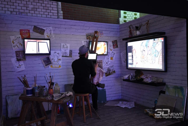 Перейдем к гаджетам во многом экспериментальным, созданным, чтобы немного всколыхнуть слегка стагнирующий мир пользовательской электроники. Yoga Book, который также представляется компанией как ноутбук-трансформер, на самом деле предлагает несколько иной способ взаимодействия с устройством, чем мы привыкли. Во-первых, да, он раскрывается как книга и как ноутбук – но он... лишен физической клавиатуры! При этом и второго дисплея на рабочей поверхности тоже нет (подобные устройства мы видели раньше) – она сделана из матового пластика и в состоянии покоя представляет собой черную магнитную поверхность. На ней в случае необходимости что-либо напечатать клавиатура проявляется при помощи светодиодной подсветки – она зовется Halo Keyboard.