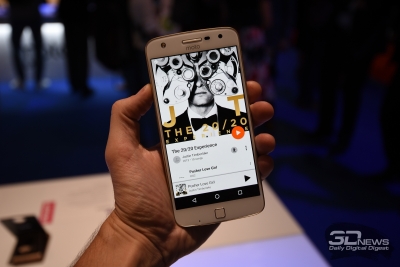 Наконец, смартфон Moto Z Play. Сам анонсированный вчера смартфон не вызывает какого-то неподдельного восторга, это вполне рядовой гаджет, если не считать новой модульной концепции Moto, представленной вместе с флагманским Moto Z. Он снабжен 5,5-дюймовым AMOLED-дисплеем, 16-мегапиксельной камерой с гибридным автофокусом, 5-мегапиксельной передней камерой, системой-на-чипе Qualcomm Snapgragon 625, 3 Гбайт оперативки, 32 Гбайт основной памяти при поддержке карт памяти microSD. Его ключевые фишки – батарея емкостью 3510 мА*ч, позволяющая, опять же в теории, прожить 50 часов без подзарядки (вот это число, скорее всего, отличается от реальности сильно), и защищенный от брызг корпус.