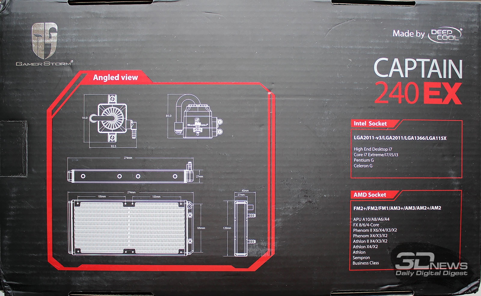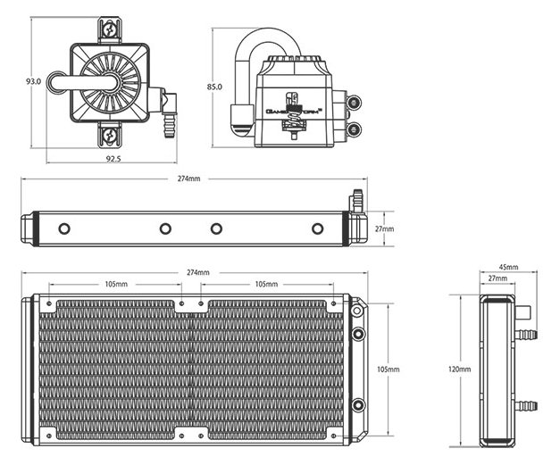 Размеры радиатора новой системы не изменились и составляют 274 × 120 × 27 мм. Впрочем, и остальные компоненты не модифицировались по габаритам, что хорошо видно на следующей схеме.