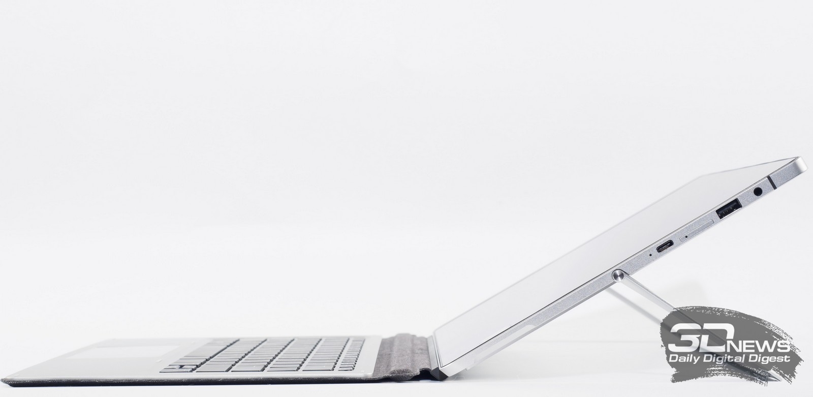 На корпусе устройства вполне достаточный набор портов для подключения: один USB 3.1 Type-C с поддержкой Thunderbolt (через него производится зарядка), привычный USB 3.0 Type-A, и комбинированный 3,5-мм разъём для подключения наушников/акустики или микрофона.