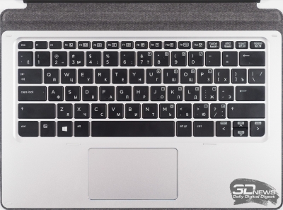 Для трансформера HP Elite X2 1012 G1 основным способом ввода является экранная клавиатура. Но поскольку устройство является далеко не самым компактным и лёгким, а довольно производительная начинка позволяет выполнять широкий спектр задач, производитель позаботился о возможности подключения клавиатурного блока с сенсорной панелью.