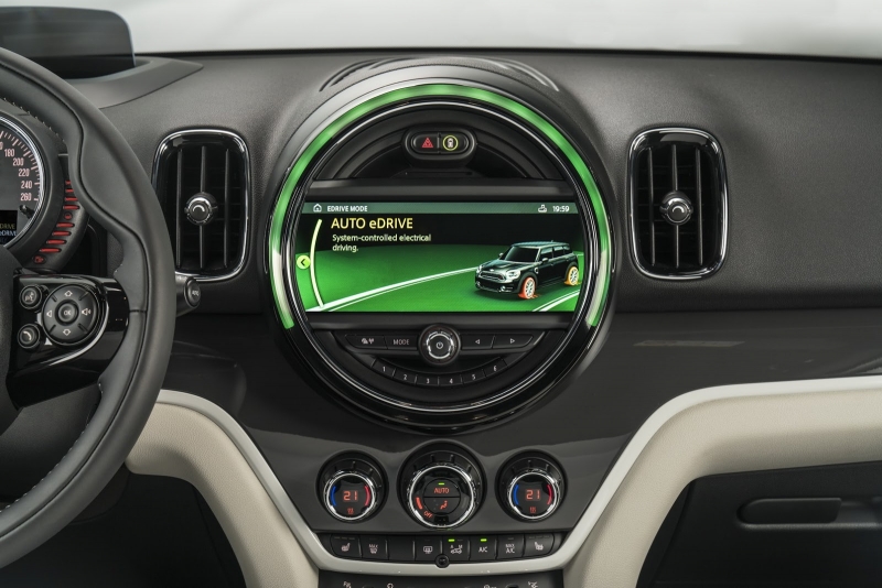 Отдельного упоминания заслуживает MINI Cooper S E Countryman ALL4. Это первый в истории марки гибридный автомобиль. В его основе лежит самая простая модификация Cooper Countryman: здесь тоже используется 136-сильный трехцилиндровый турбомоторчик. Однако он дополнен синхронным электродвигателем, добавляющим 88 «электролошадок». Примечательно, что инженеры решили использовать параллельную схему: в то время как ДВС подключен к передним колесам посредством шестиступенчатого «автомата» Steptronic, электромотор через односкоростную трансмиссию передает крутящий момент на заднюю ось. Таким образом, два двигателя полностью независимы друг от друга, но могут работать сообща. Суммарная отдача составляет 224 лошадиных силы и 385 Н·м.