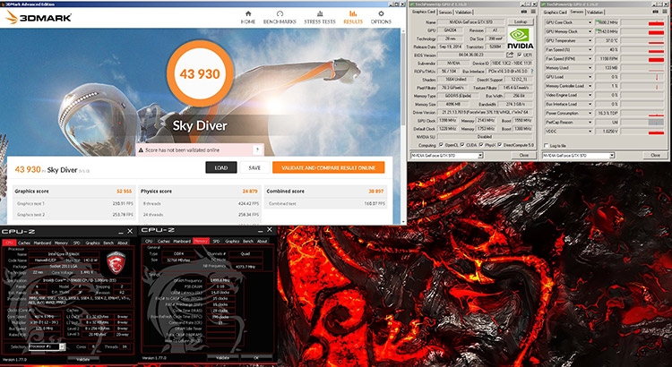 • 3DMark Sky Diver: 43 930 очков, 1 место;