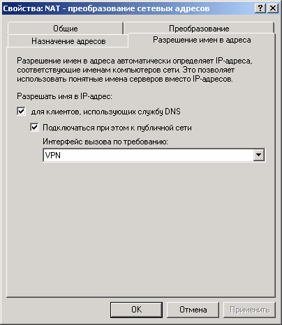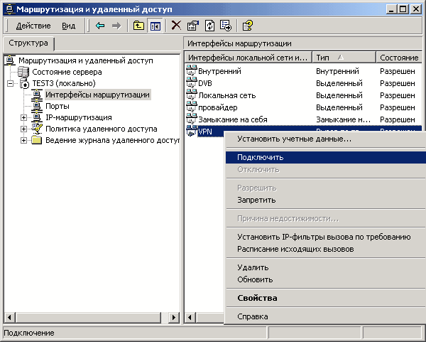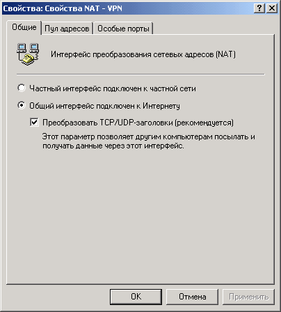 Настройка RRAS (Маршрутизация и удаленный доступ) производится на серверных ОС Windows 2000 server/Windows 2003 .