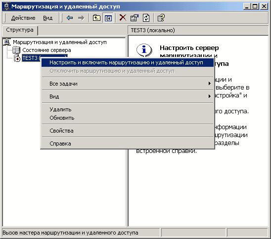 5. Далее необходимо сконфигурировать службу, для этого необходимо запустить мастер маршрутизации и удаленного доступа см.рис.