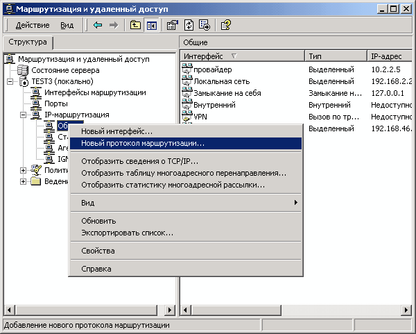 18. Создайте новый протокол маршрутизации NAT (преобразование адресов)