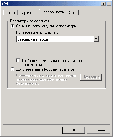 14. Во вкладке "Безопасность" выставите необходимые параметры полученные от Вашего провайдера.