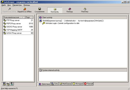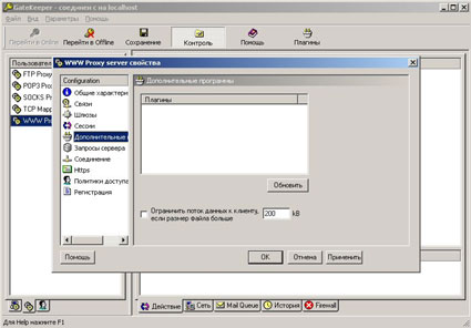 7. Выбираем закладку Дополнительные программы. Здесь можно видеть дополнительные плагины для Вингейт, если таковы буду устновлены. Например, фильтр для взрослых сайтов. Так-же можно ограничивать поток данных.
