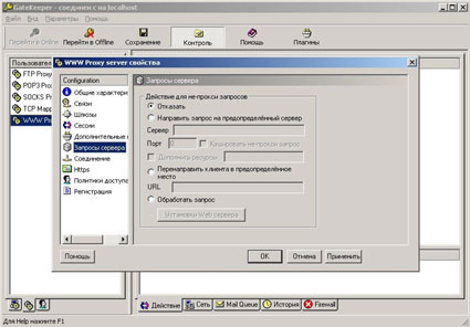 Здесь можно настроить обработку запросов на Ваш локальный WWW сервер, не пропуская их через прокси сервер. По умолчанию все запросы идут через прокси.