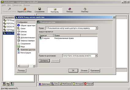13. Таки образом мы добавили пользователя Everyone. Everyone в нашем случае, дает полный доступ в интернет через WWW proxy server всем пользователям Вашей локальной сети. To, что нужно для отладки.