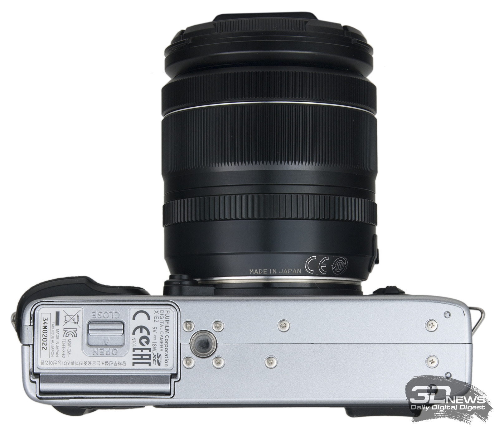 Придраться к качеству материалов и сборки весьма сложно. Нам удалось обнаружить только одну крохотную недоработку — в креплении крышки аккумуляторного отсека имеется небольшой люфт, хотя заметить это можно, только если намеренно искать хоть какой-то недостаток. При попытке скручивания и сдавливания корпус ни капли не прогибается и не издаёт никаких звуков. В общем, вещица крайне добротно скроена. Напомним, на всякий случай, что X-E2, как и ее предшественница, не защищена от воды и даже брызг, так что качество сборки — это хорошо, но обращаться с камерой стоит бережно.