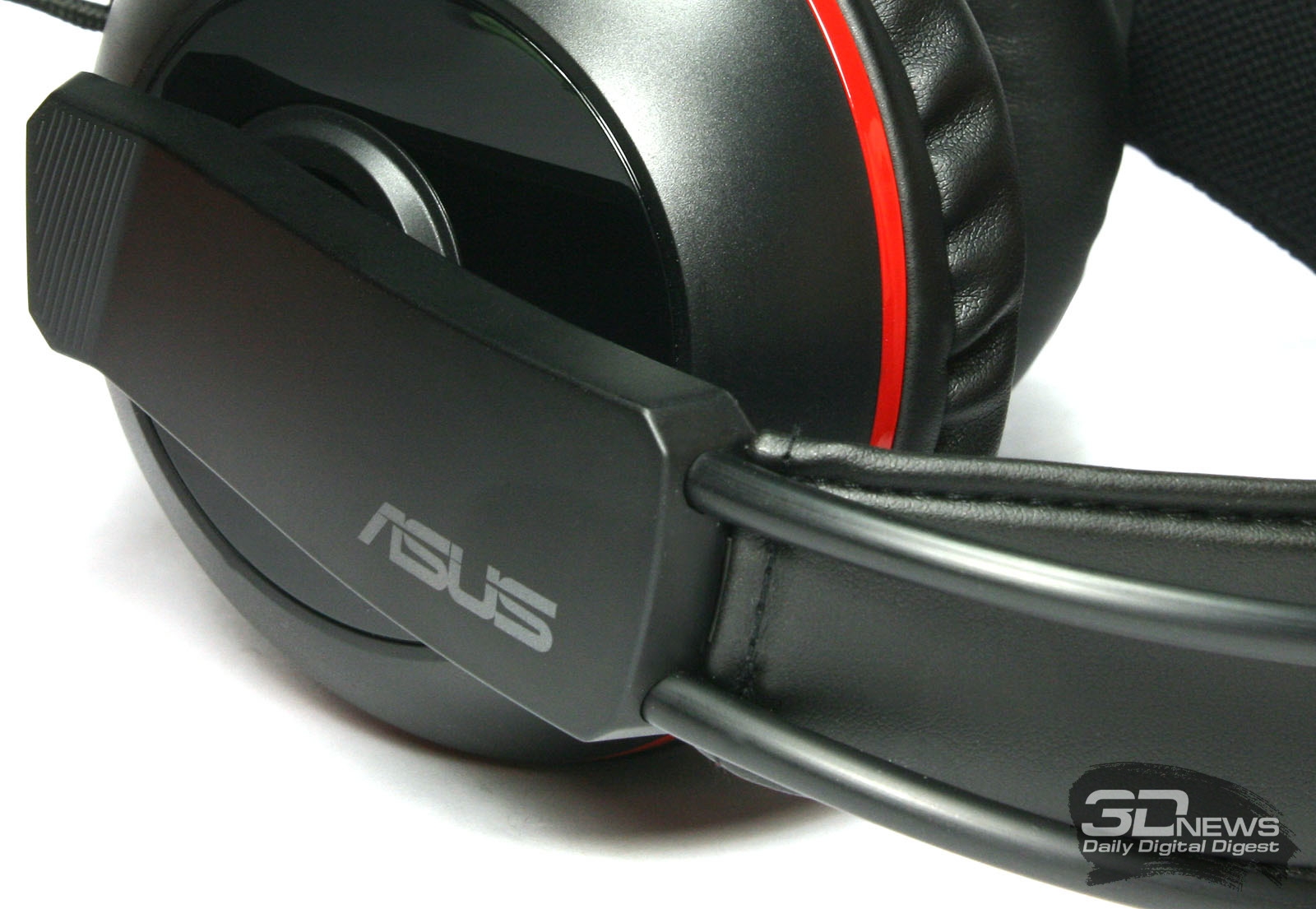 Все игровые гарнитуры ASUS имеют крупные чашки, и модель ASUS Cerberus не является исключением. Внешний диаметр чашек у этой гарнитуры составляет 100 мм, что не только позволило разместить внутри них 60-миллиметровые излучатели, но ещё и поспособствовало комфортному ношению. Огромные кожаные амбушюры целиком закрывают уши и создают отличную шумоизоляцию. При этом чашки имеют возможность отклонения на небольшой угол, хотя на 90º не поворачиваются. Но и этого угла вполне достаточно для точной подстройки наушников под индивидуальные особенности любого пользователя. Ну а само крепление чашек выглядит достаточно надёжно, хотя в случае, когда на гарнитуру, скажем, кто-нибудь случайно сядет, в первую очередь нагрузку на себя возьмёт легко изгибаемое оголовье, а уж потом все остальные элементы конструкции.