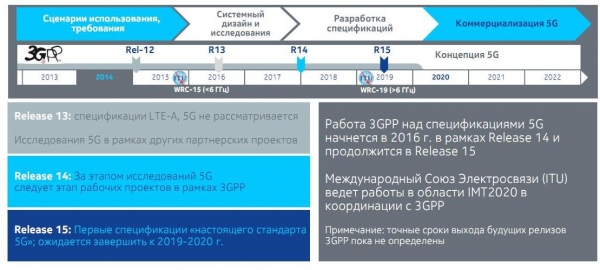 Основные подготовительные работы к его наступлению ведутся в рамках 3GPP – органа, занимающегося стандартизацией технологий сотовых сетей. Первые рабочие наметки будут освещены в 14-м выпуске, а первые спецификации появятся в районе 2019 года в 15-м выпуске.