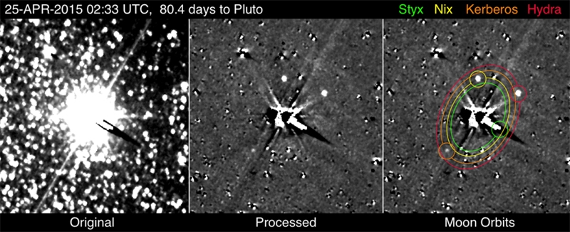 Опубликованные изображения спутников Кербер и Стикс получены в период с 25 апреля по 1 мая при помощи инструмента LORRI (Long-Range Reconnaissance Imager). Этот прибор представляет собой камеру с разрешением в 5 микрорадиан, предназначенную для детальной съёмки и съёмки с большого расстояния.