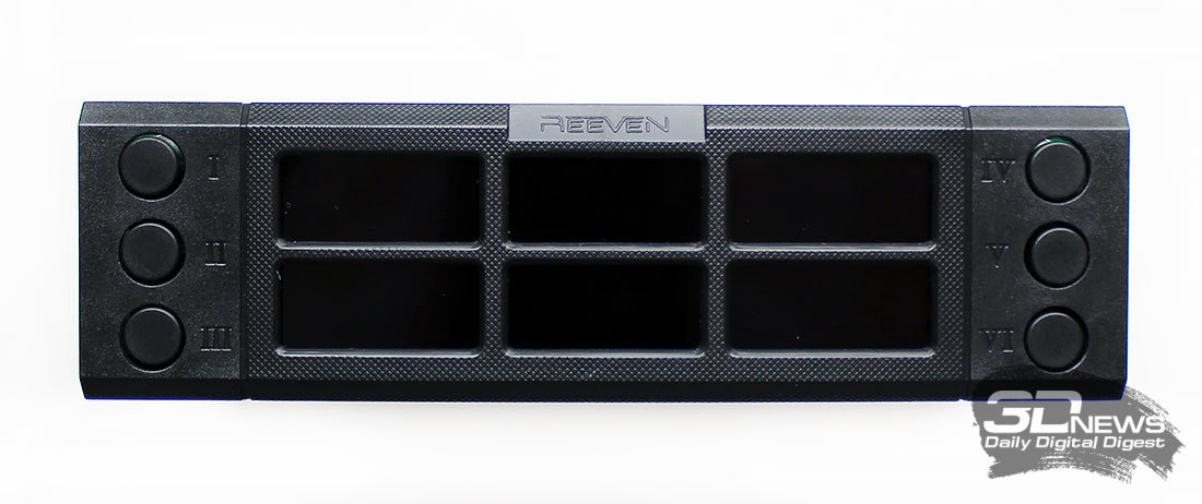 Их длина в выдвинутом состоянии составляет 8 мм, но, благодаря такой удобной возможности, Reeven SIX EYES II будет совместима с теми корпусами, у которых есть откидная лицевая панель.