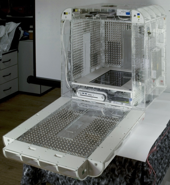 Устройство представляет собой ящик со стенками из оргстекла. Объект, для которого необходимо создать 3D-модель, помещается внутрь. Таким образом, максимальные габариты оригинала ограничиваются размерами сканера.