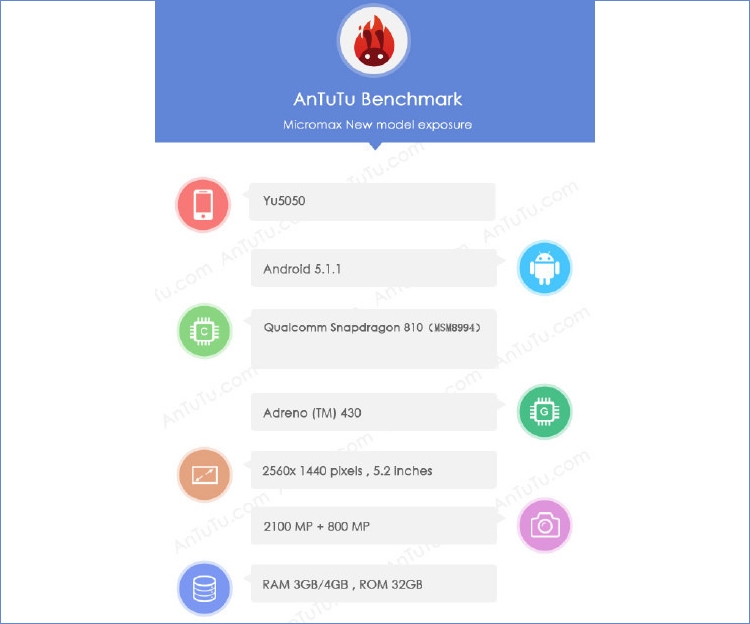 Новинка станет флагманским аппаратом бренда YU. Устройство получит процессор Qualcomm Snapdragon 810 с восемью ядрами (квартеты ARM Cortex-A57 и Cortex-A53 с частотой до 2,0 и 1,5 ГГц) и графическим контроллером Adreno 430 с поддержкой 4K-разрешений. Объём оперативной памяти составит 4 Гбайт.