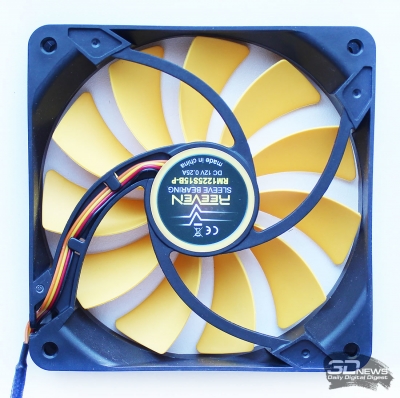 Reeven HANS оснащается одним 120-мм вентилятором COLDWING 12 (модель RM1225S15B-P). Яркая жёлтая крыльчатка диаметром 114 мм имеет сразу 11 лопастей и закруглённые края ротора.