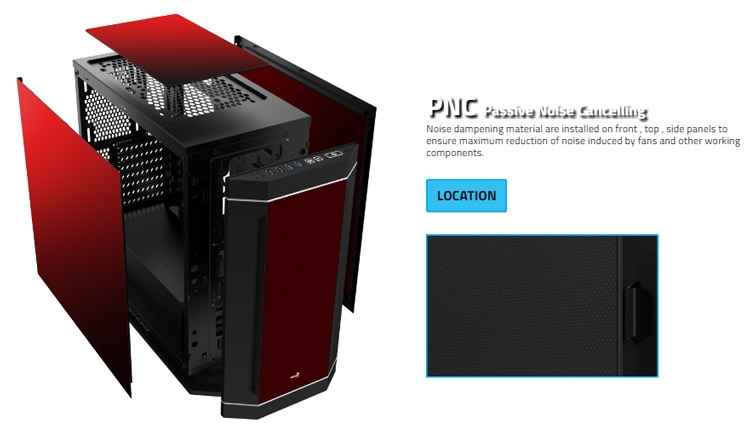 Передняя, верхняя и боковые стенки корпуса покрыты шумопоглощающим материалом, дабы оправдать словосочетание dead silence (в пер. с англ. — «мёртвая тишина»).