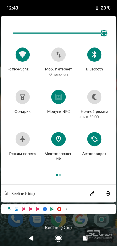 Как я уже отмечал, гордость Motorola – «чистая» операционная система Android, без каких-либо оболочек. В данном случае это Android 9.0 Pie. Внешне она, тем не менее, слегка отличается – все-таки без фирменных тем, виджетов и разных фишек с управлением не обошлось. Например, можно традиционным образом касаться трех нижних иконок, а можно использовать вместо этого жесты, проводя пальцами по дисплею. Режим «Не беспокоить» включается, если перевернуть смартфон экраном вниз, а яркость экрана не меняется, пока вы смотрите на него.